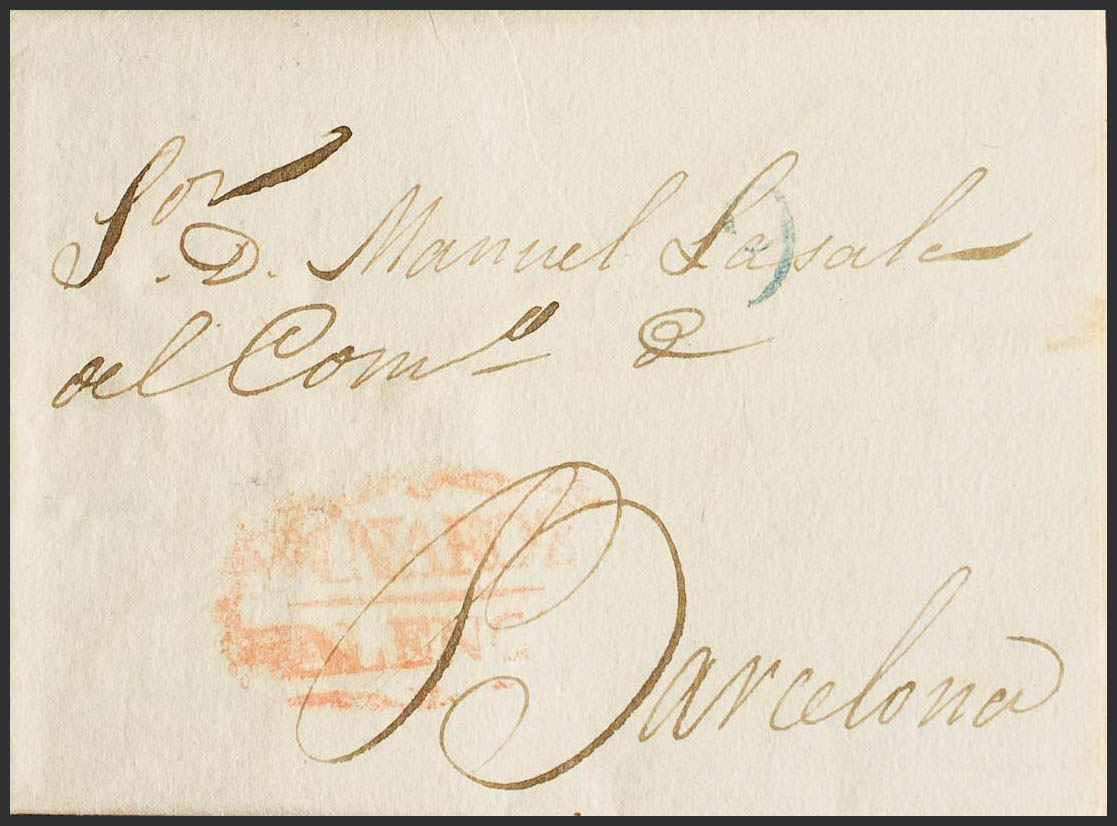 1840. VINAROZ a BARCELONA. Marca VINAROZ / VALENCIA (P.E.6) edición 2004. BONITA.