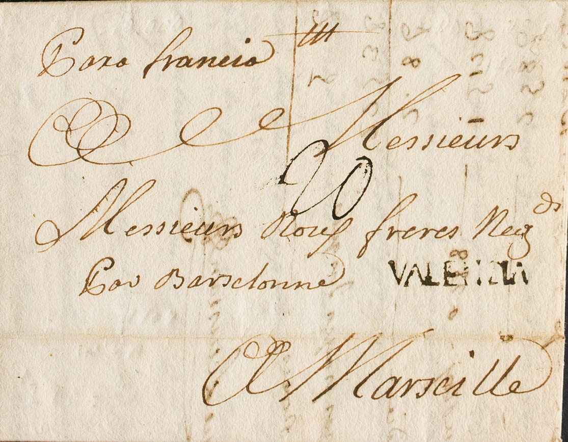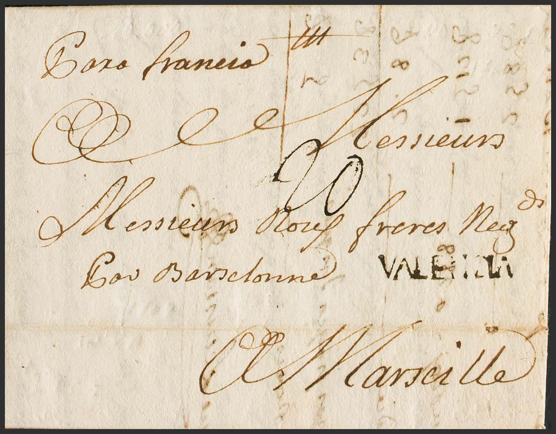 1764. GANDIA a MARSELLA. Marca VALENCIA, de GandÃa (P.E.1) edición 2004. MAGNIFICA Y RARA.