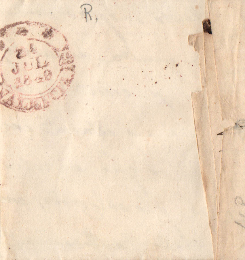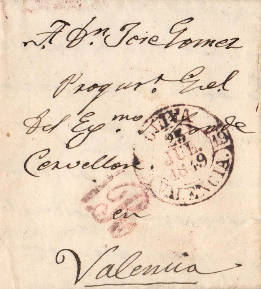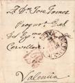 1849. PILES a VALENCIA. Baeza OLIVA / VALENCIA, en rojo. MAGNIFICA Y RARA.