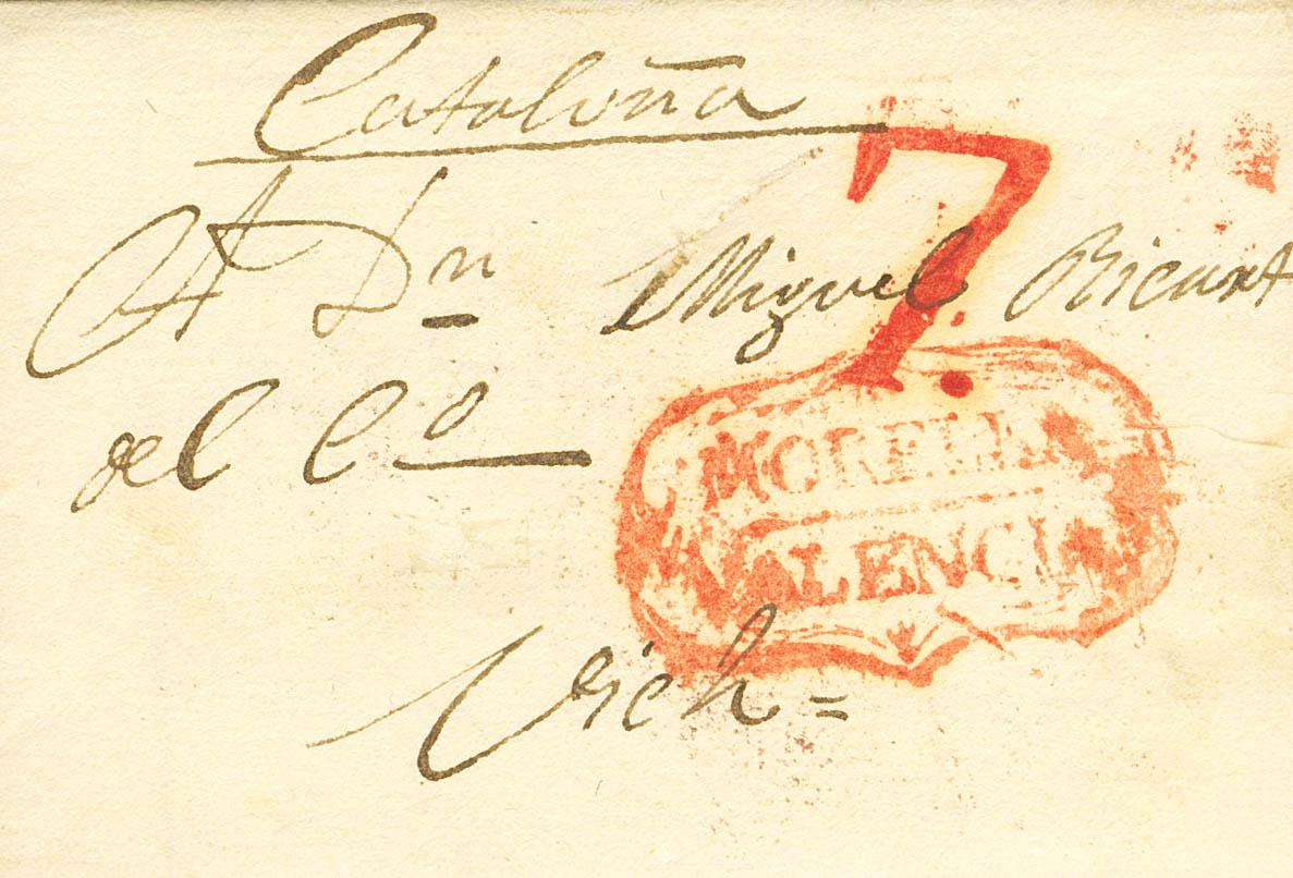 1831. MORELLA (CASTELLON) a VICH (BARCELONA). Marca MORELLA / VALENCIA (P.E.3) edición 2004. MAGNIFICA.
