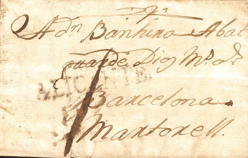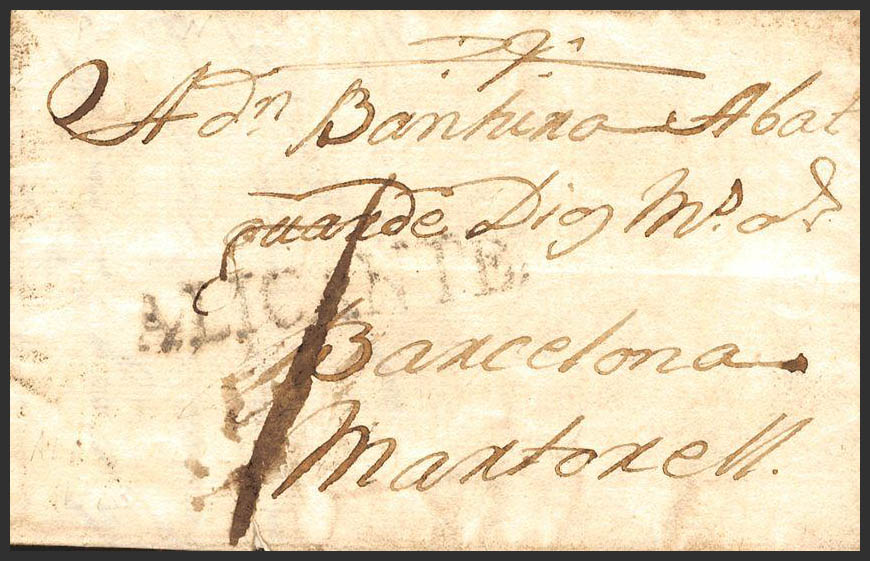 1783. ALICANTE a MARTORELL. Marca ALICANTE, en negro (P.E.12) edición 2004. MAGNIFICA Y RARA.