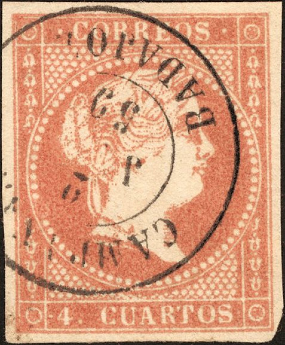 48. 1856. 4 cuartos rojo. Matasello CAMPANARIO / BADAJOZ.