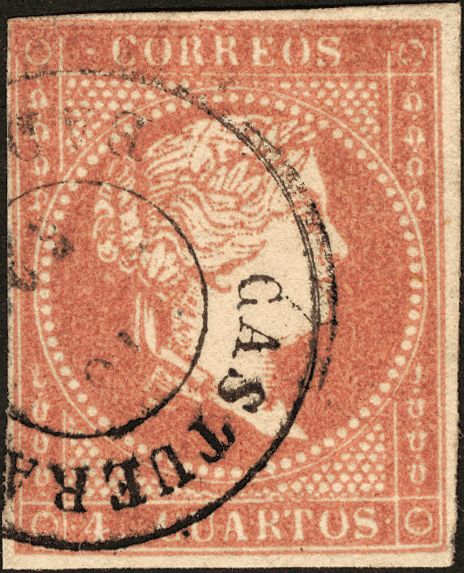 48. 1856. 4 cuartos rojo. Matasello CASTUERA / BADAJOZ.