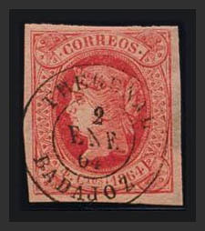 Extremadura. Filatelia. (2-ENE-1864, 2º DÃa de Circulación). FREGENAL / BADAJOZ. MAGNIFICO.