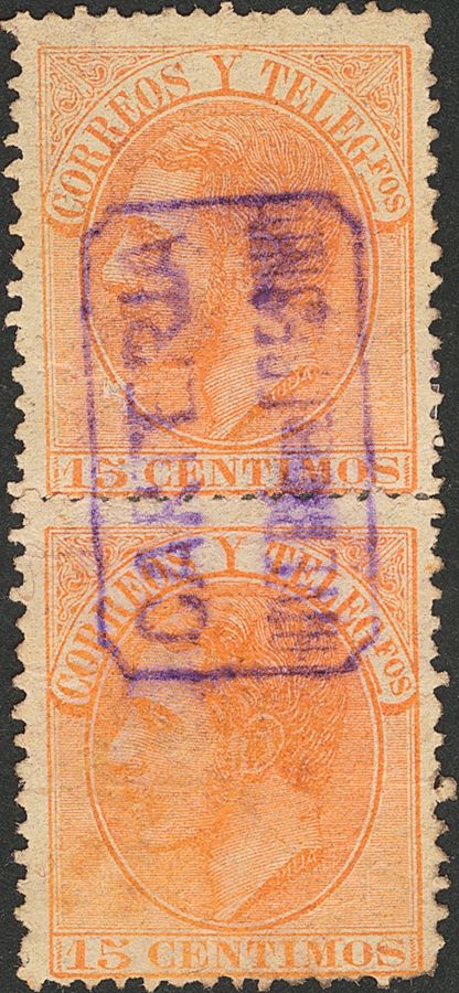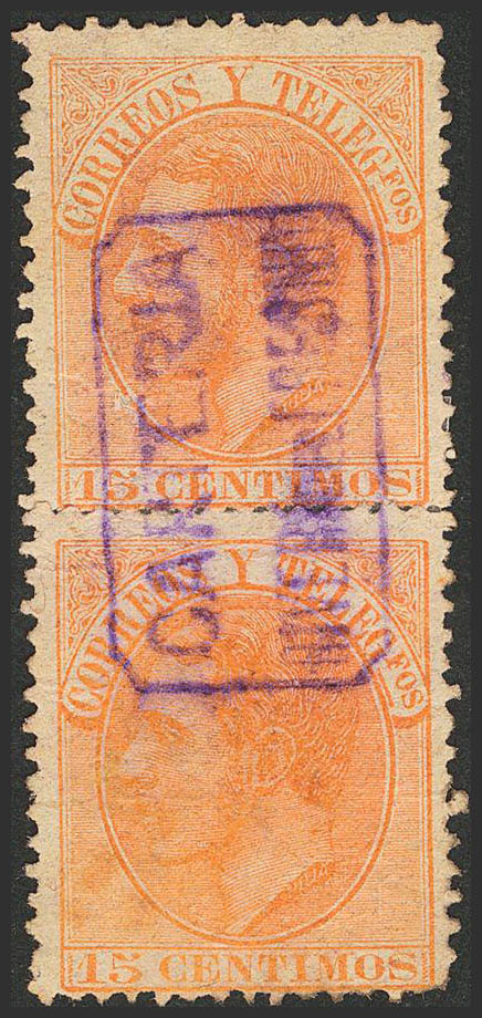 Extremadura. Filatelia. CARTERIA / RIVERA DEL FRESNO, en violeta, pareja vertical. MAGNIFICA.