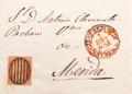 12. 1852. 6 cuartos rosa. DON BENITO a MERIDA. En el frente baeza DON BENITO / ESTREM B., en rojo. MAGNIFICA Y ESPECTACULAR.