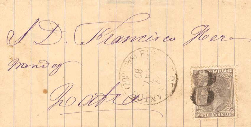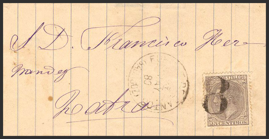 204. 1880. 25 cts. gris. FUENTE DE CANTOS a ZAFRA. Matasello prefilatélico "8", de porteo en negro. MAGNIFICO Y RARISIMO.
