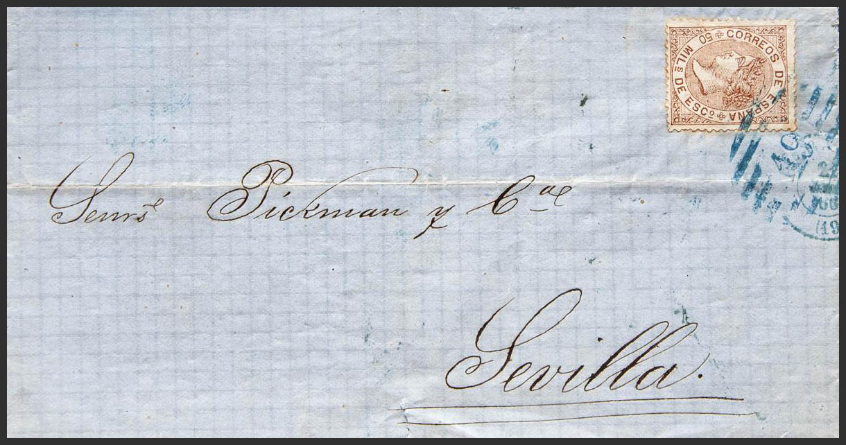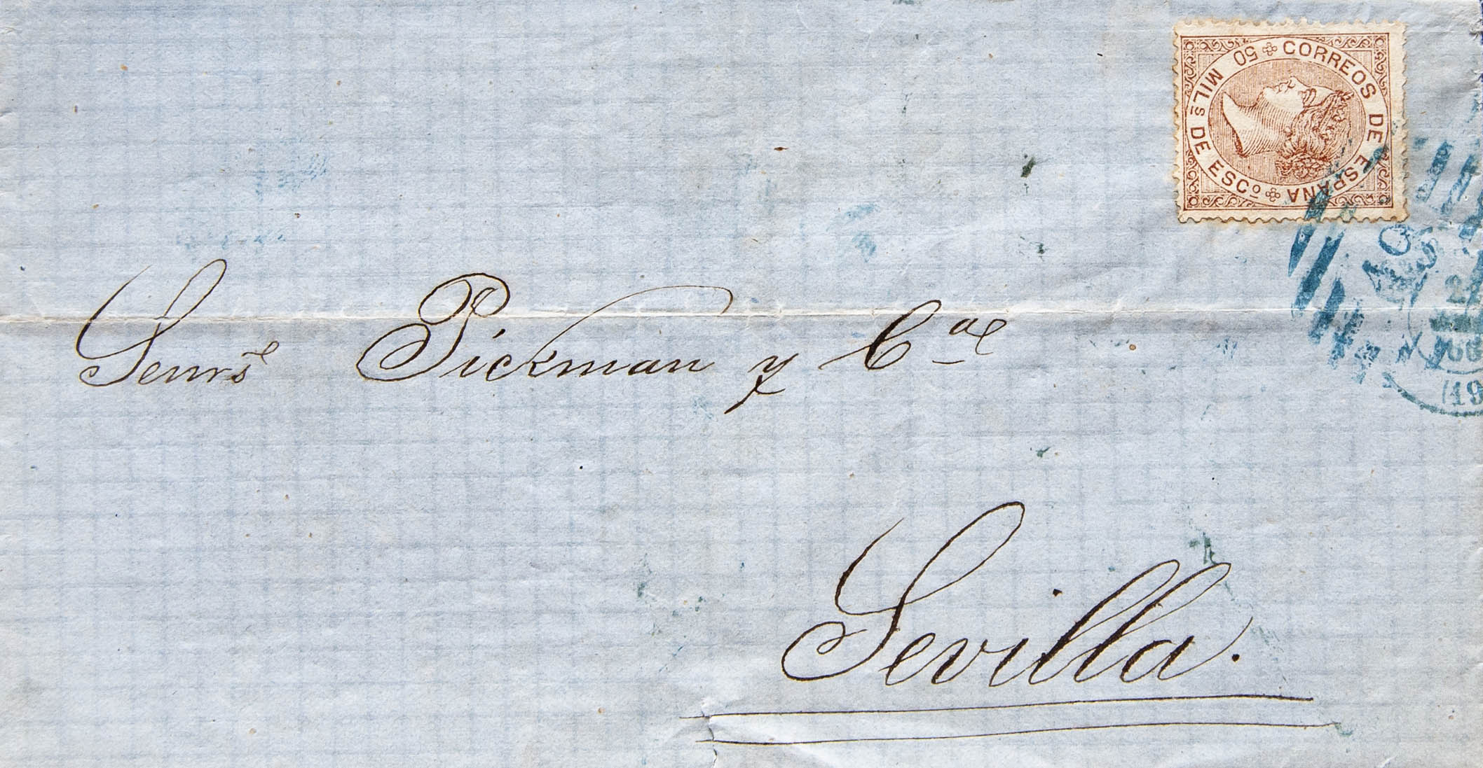 Extremadura. Historia Postal. PARRILLA CON Nª19, en azul de Badajoz. MAGNIFICA Y RARA.
