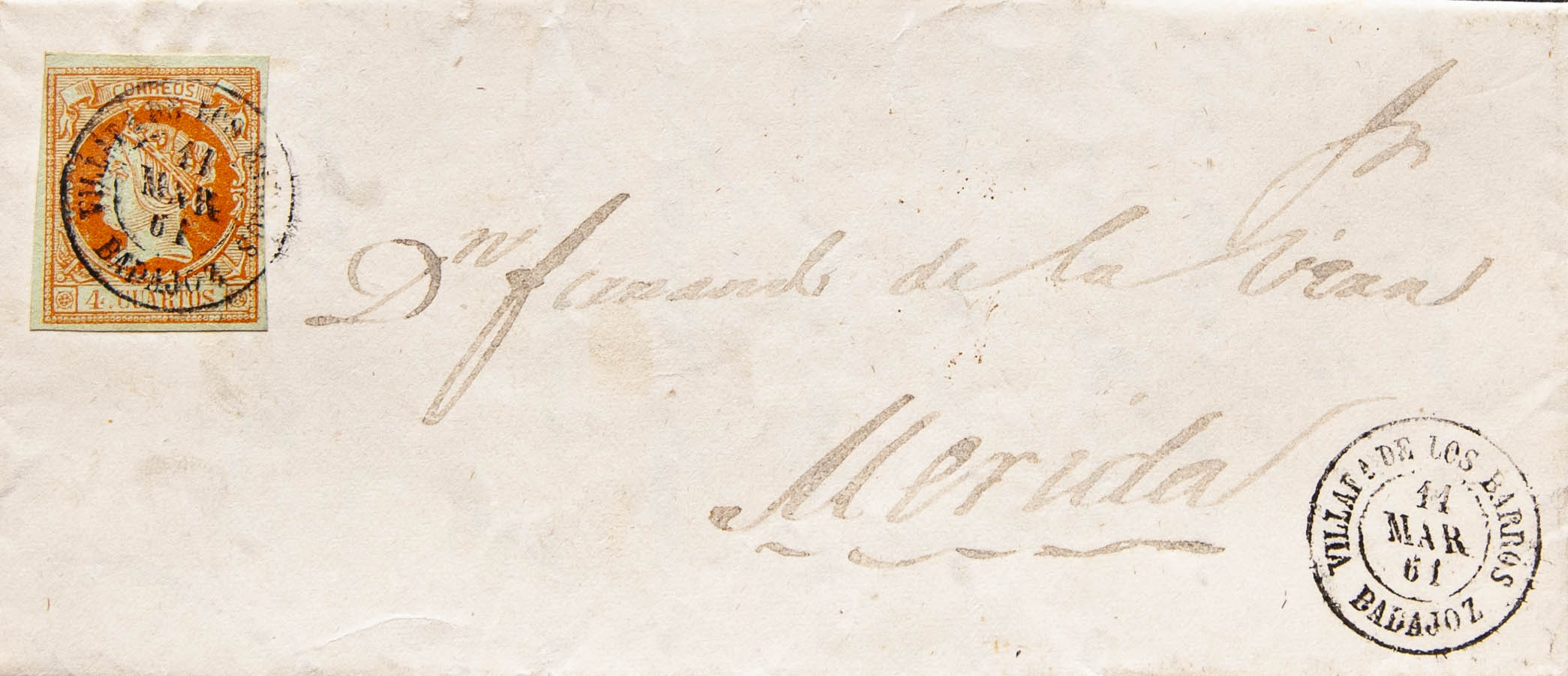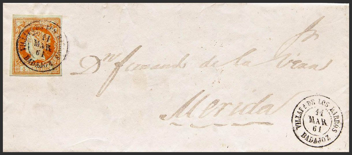 Extremadura. Historia Postal. VILLAFª DE LOS BARROS / BADAJOZ. MAGNIFICA.