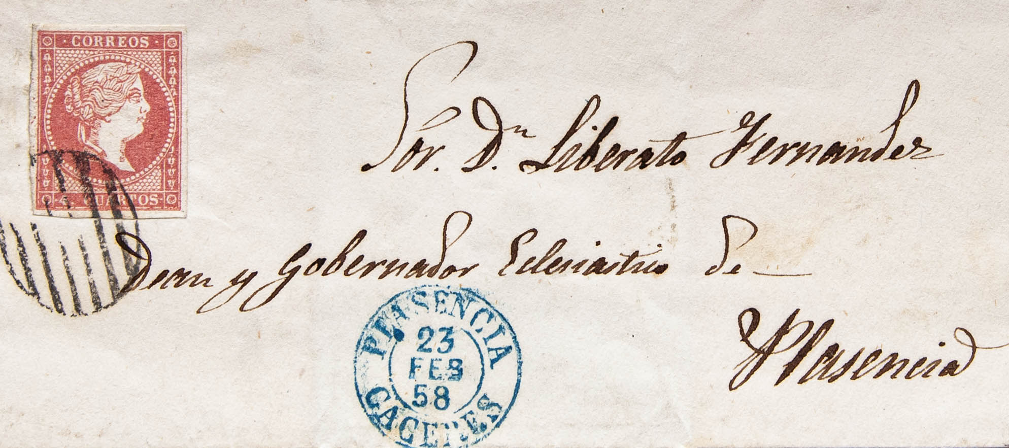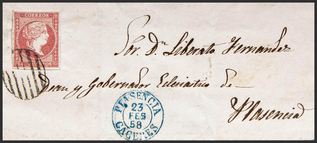 Extremadura. Historia Postal. En el frente PLASENCIA / CACERES (Tipo I), en azul. MAGNIFICA.
