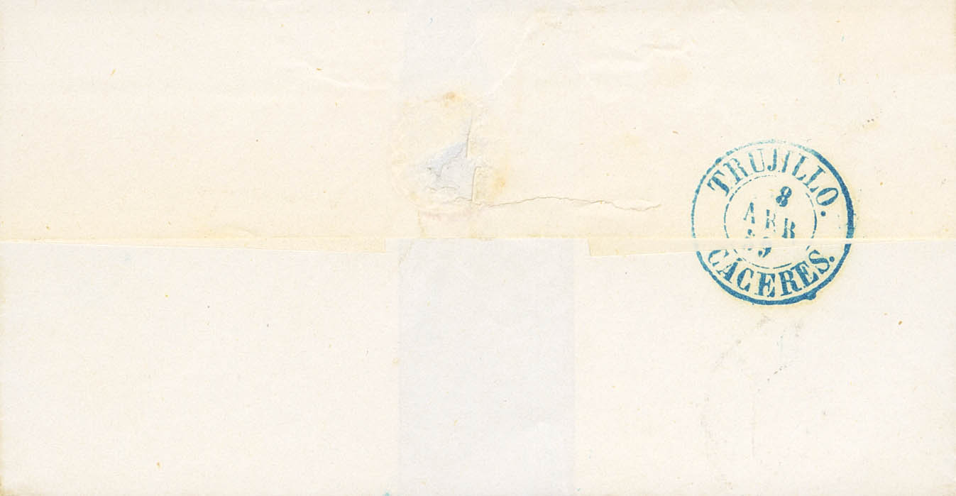 48. 1859. 4 cuartos rojo. MERIDA a TRUJILLO. Matasello MERIDA / BADAJOZ. MAGNIFICA.