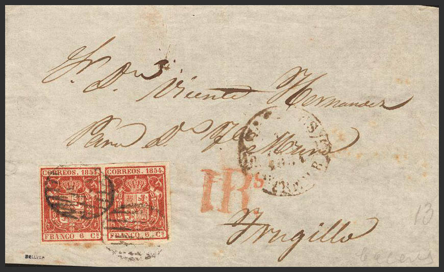 Extremadura. Historia Postal. Frontal. Doble porte. Tasada.