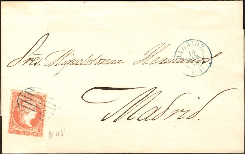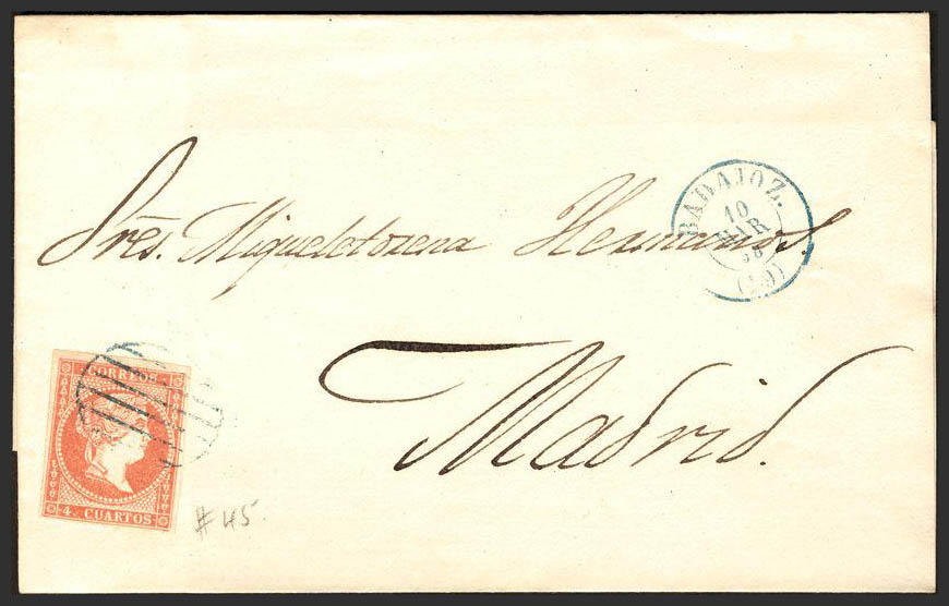 Extremadura. Historia Postal. PARRILLA, en azul. BADAJOZ / (19). MAGNIFICA.