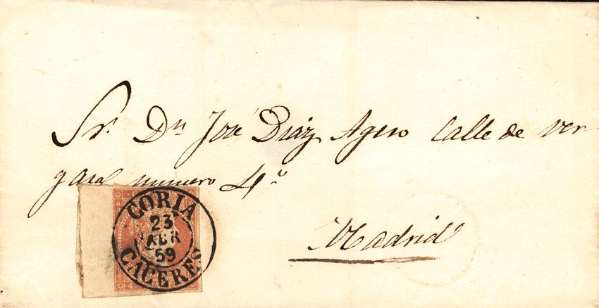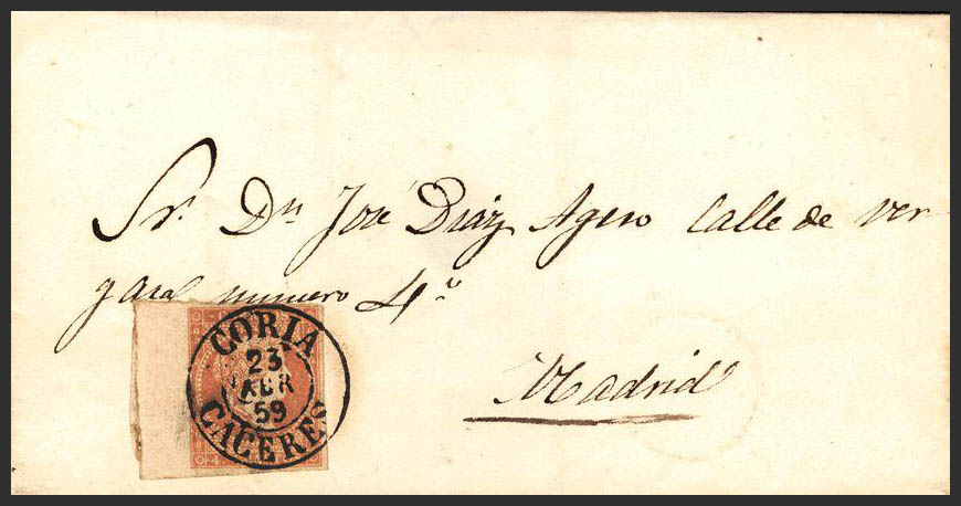 Extremadura. Historia Postal. CORIA / CACERES (Tipo I). MAGNIFICA.