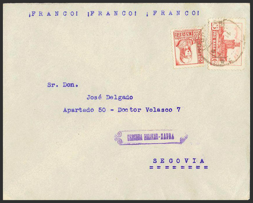 Extremadura. Historia Postal. CENSURA MILITAR - ZAFRA. MAGNIFICA.