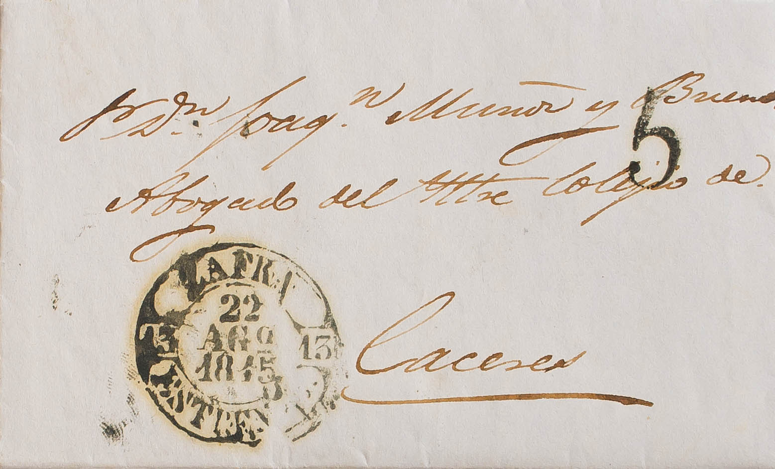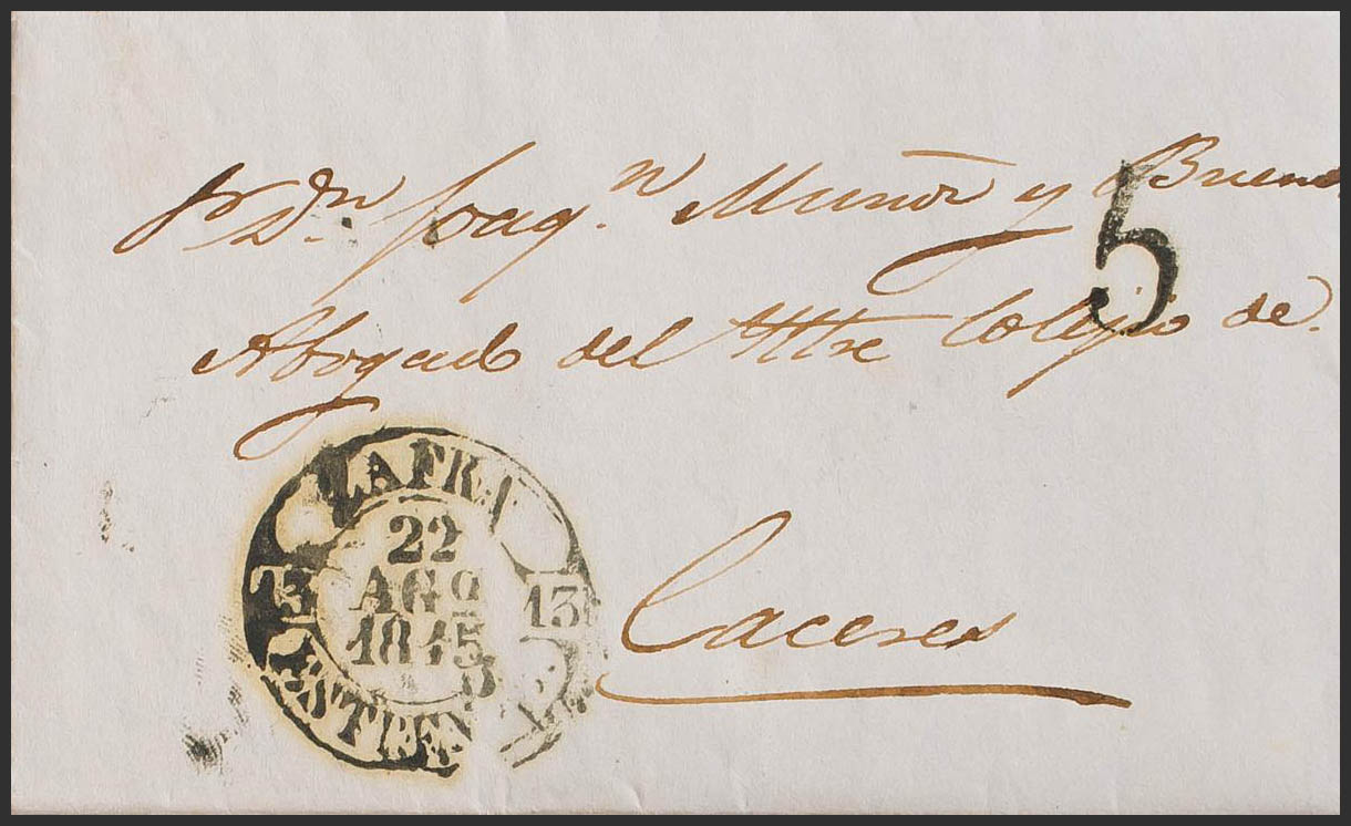 1845. ZAFRA a CACERES. Baeza ZAFRA / ESTREM. B., en negro. MAGNIFICA.