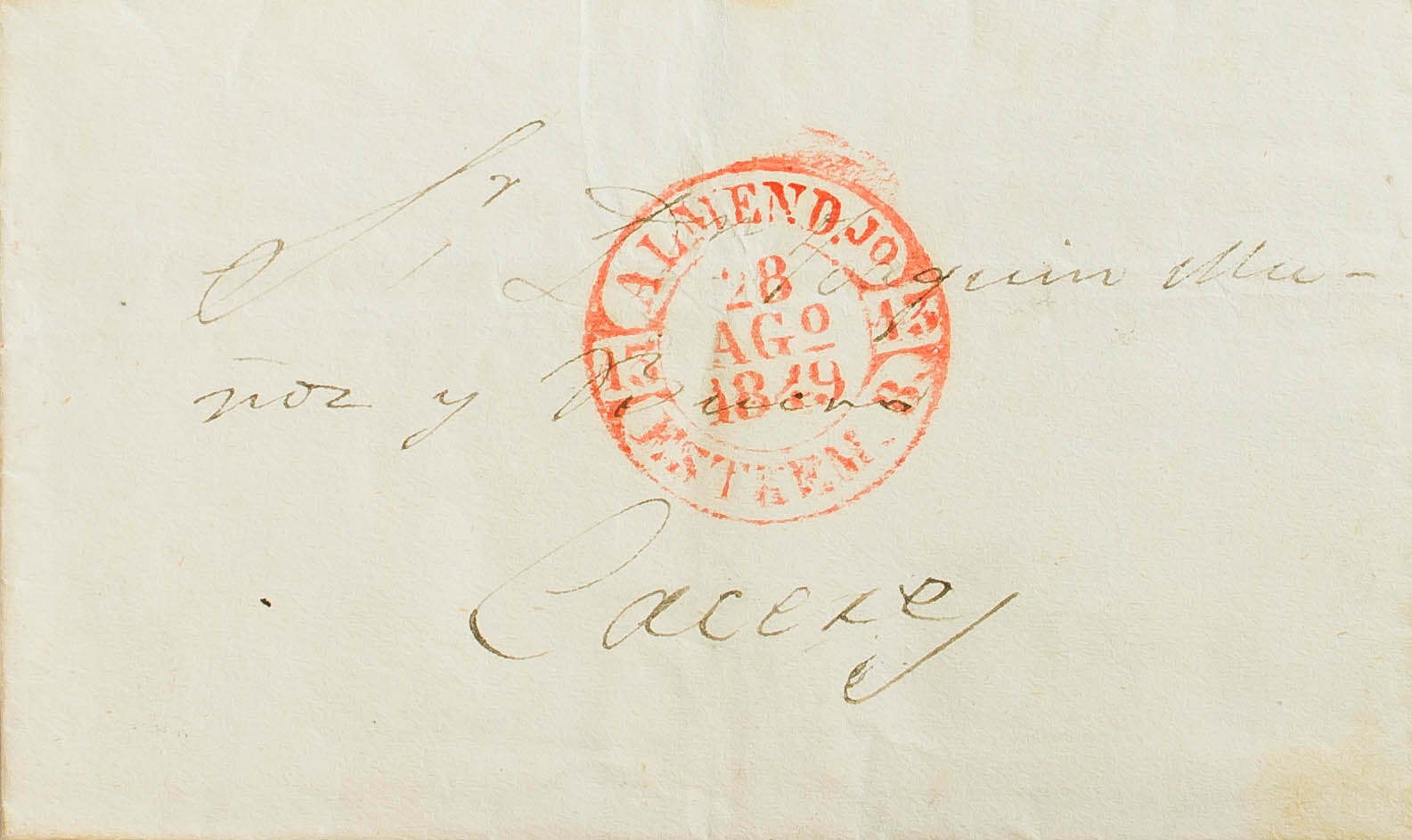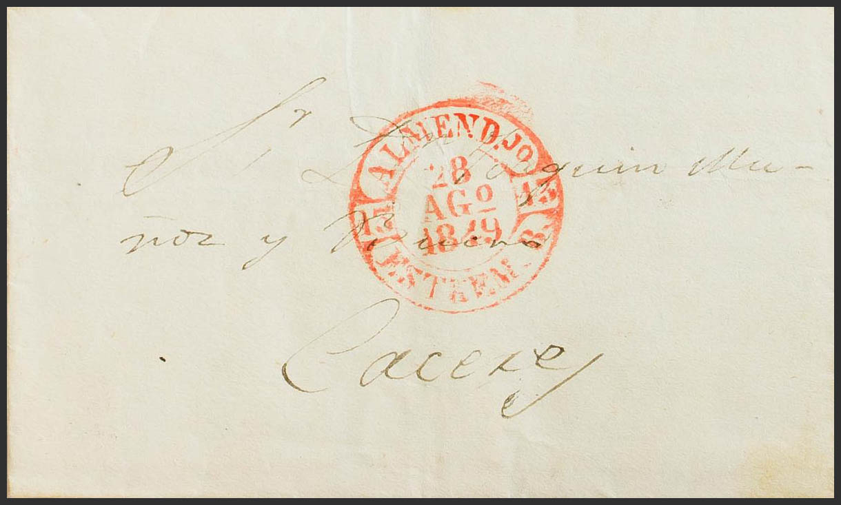 1849. HORNACHOS a CACERES. Baeza ALMENDJO. / ESTREM. B., en rojo. MAGNIFICA.
