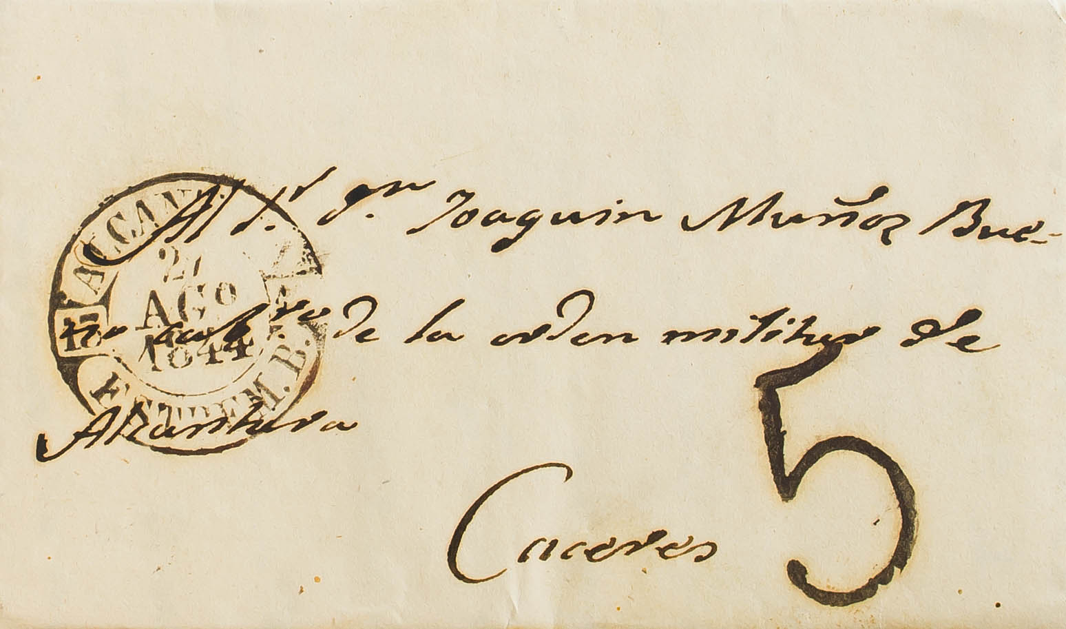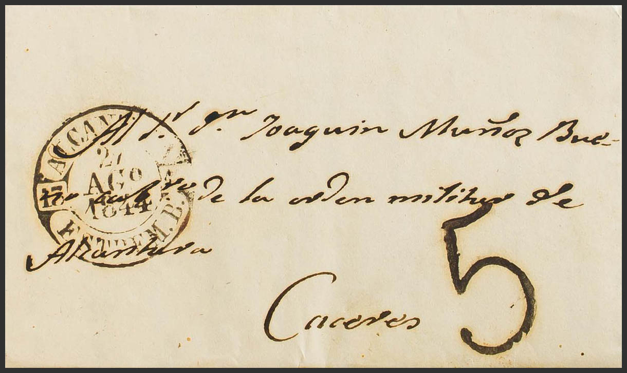 1844. ALCANTARA a CACERES. Baeza ALCANTARA / ESTREM. B., en negro. MAGNIFICA.