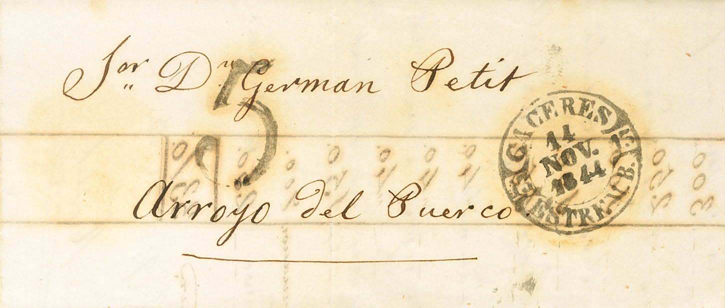 1844. CACERES a ARROYO DEL PUERCO. Baeza CACERES / ESTREM.B., en negro. MAGNIFICA.