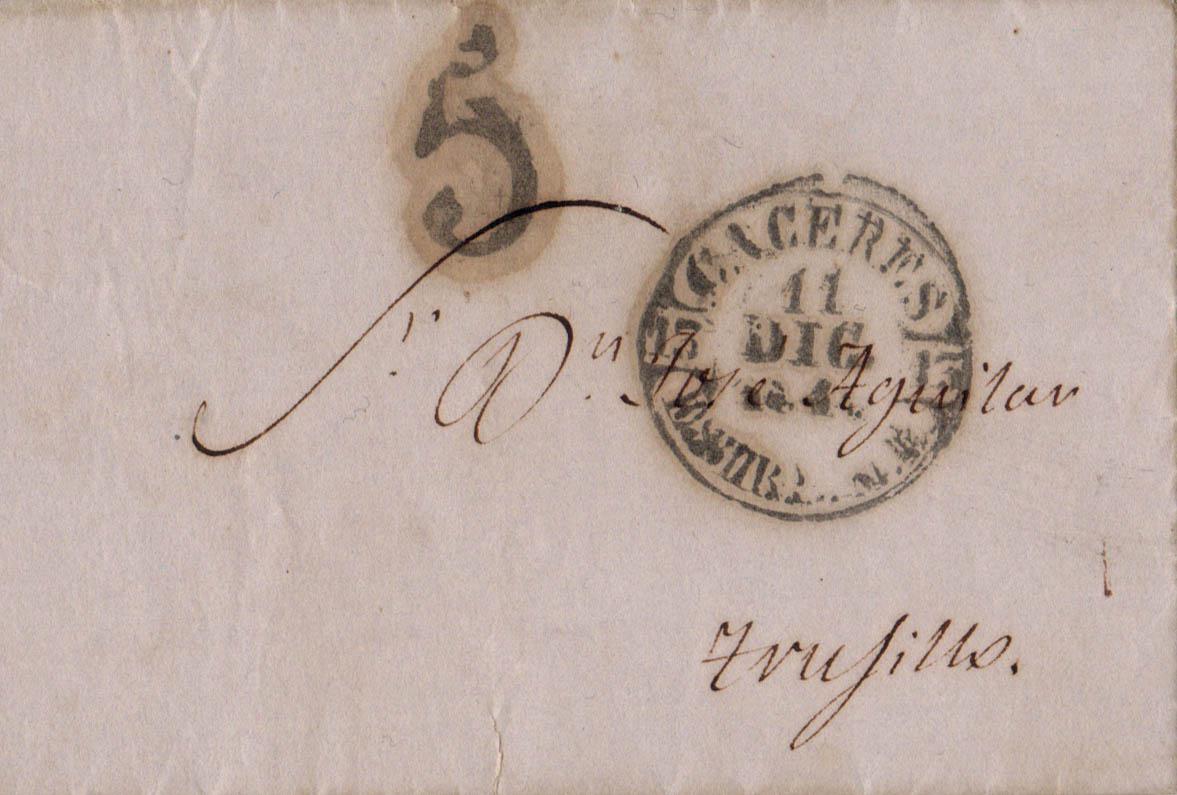 1844. CACERES a TRUJILLO. Baeza CACERES / ESTREM.B., en negro. MAGNIFICA.