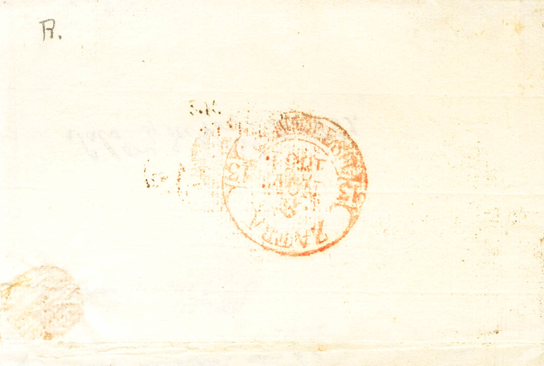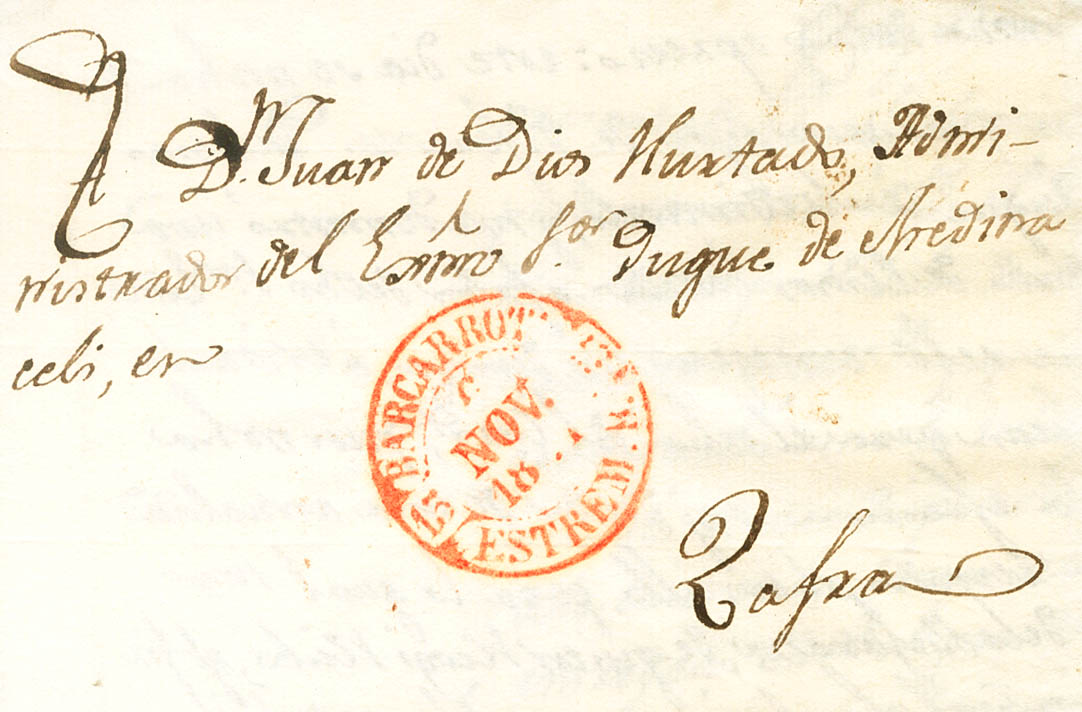 1851. SALVALEON (BADAJOZ) a ZAFRA. Baeza BARCARROTA / ESTREM.B., en rojo. MAGNIFICA Y RARA.