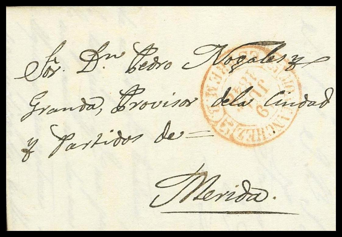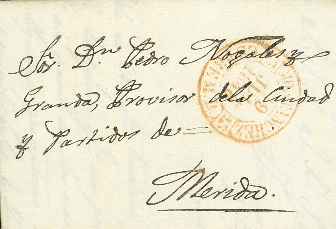 1848. TORREMOCHA (CACERES) a MERIDA. Baeza MONTANCHEZ / ESTREM.B., en rojo. MAGNIFICA.
