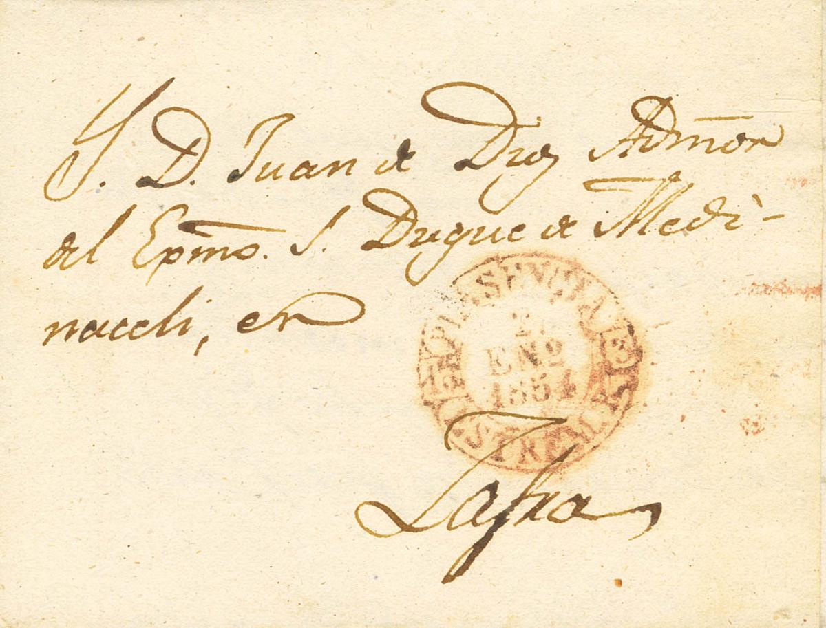 1854. PLASENCIA a ZAFRA. Baeza PLASENCIA / ESTREM.B., en rojo. MAGNIFICA.