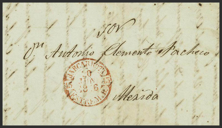 1846. BARCARROTA a MERIDA. Baeza BARCARROTA / ESTREM. B, en rojo (P.E.2) edición 2004. MAGNIFICA Y RARA.