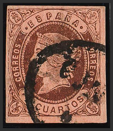 58. 1862. 4 cuartos castaño. Matasello BCº / FRANCO, de Barco de Valdeorras. MAGNIFICO Y RARO.