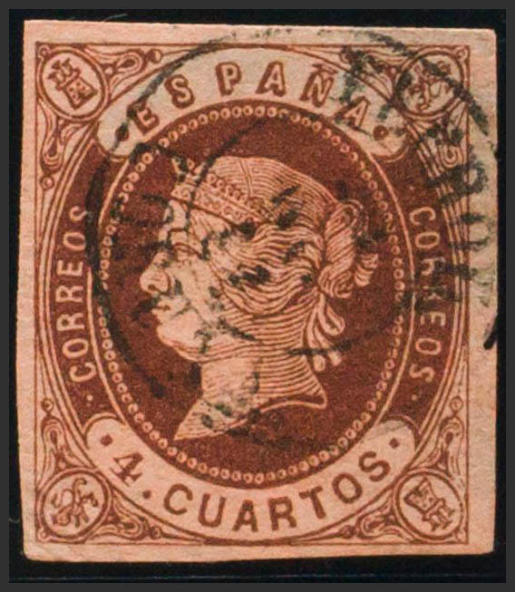 58. 1862. 4 cuartos castaño. Matasello FERROL / CORUÑA. MAGNIFICO.