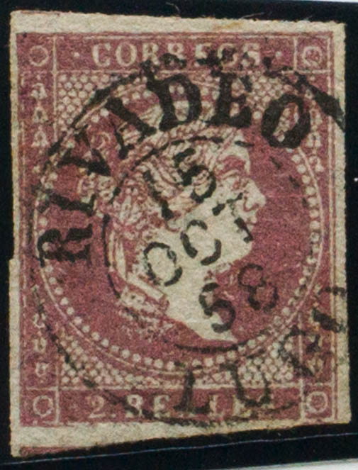 46. 1855. 2 reales violeta. Matasello RIVADEO / LUGO (Tipo I). MAGNIFICO.