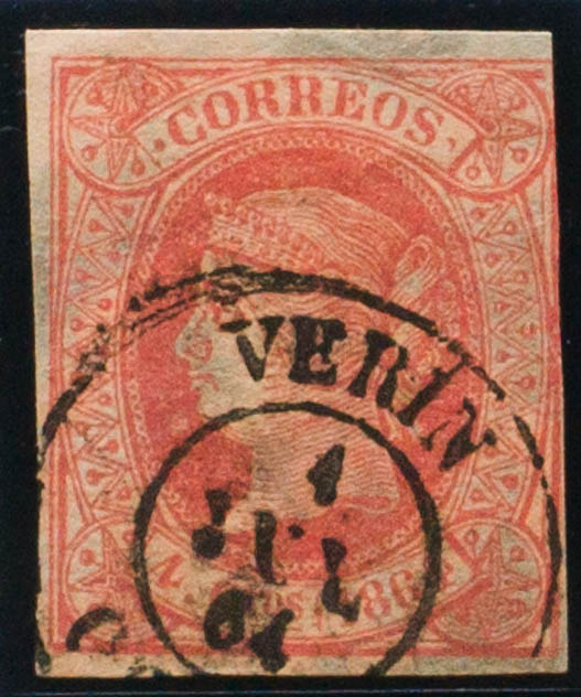64. 1864. 4 cuartos rojo. Matasello VERIN / ORENSE. MAGNIFICO.