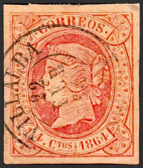 64. 1864. 4 cuartos rojo. Matasello VILLALBA / LUGO. MAGNIFICO.