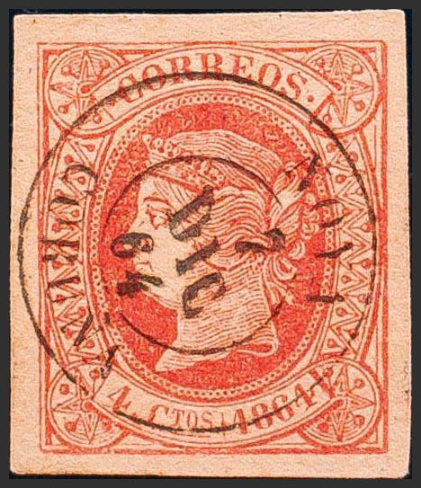 64. 1864. 4 cuartos rosa. Matasello NOYA / CORUÑA. MAGNIFICO.