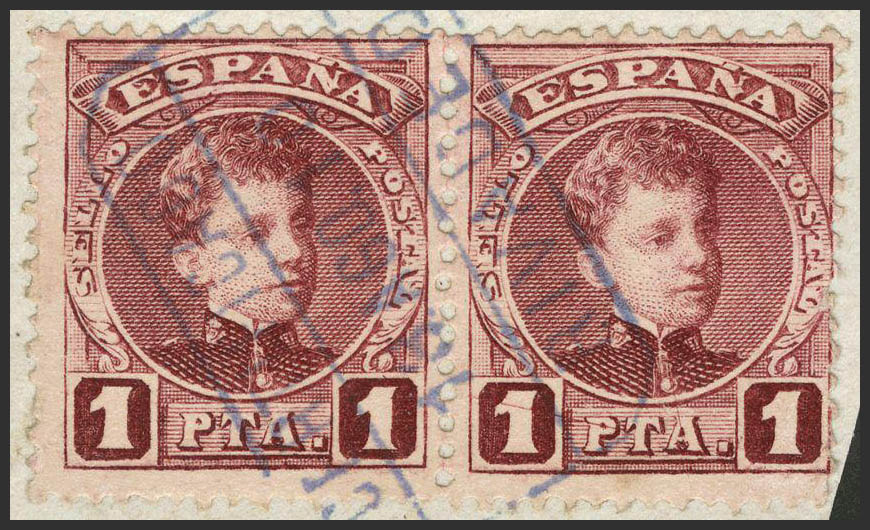 Galicia. Filatelia. CERTIFICADO / RIVADEO, en azul, pareja. MAGNIFICA.