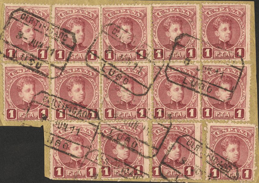 Galicia. Filatelia. CERTIFICADO / LUGO, catorce sellos. MAGNIFICOS.