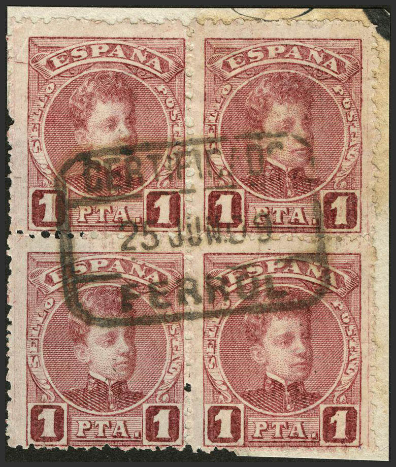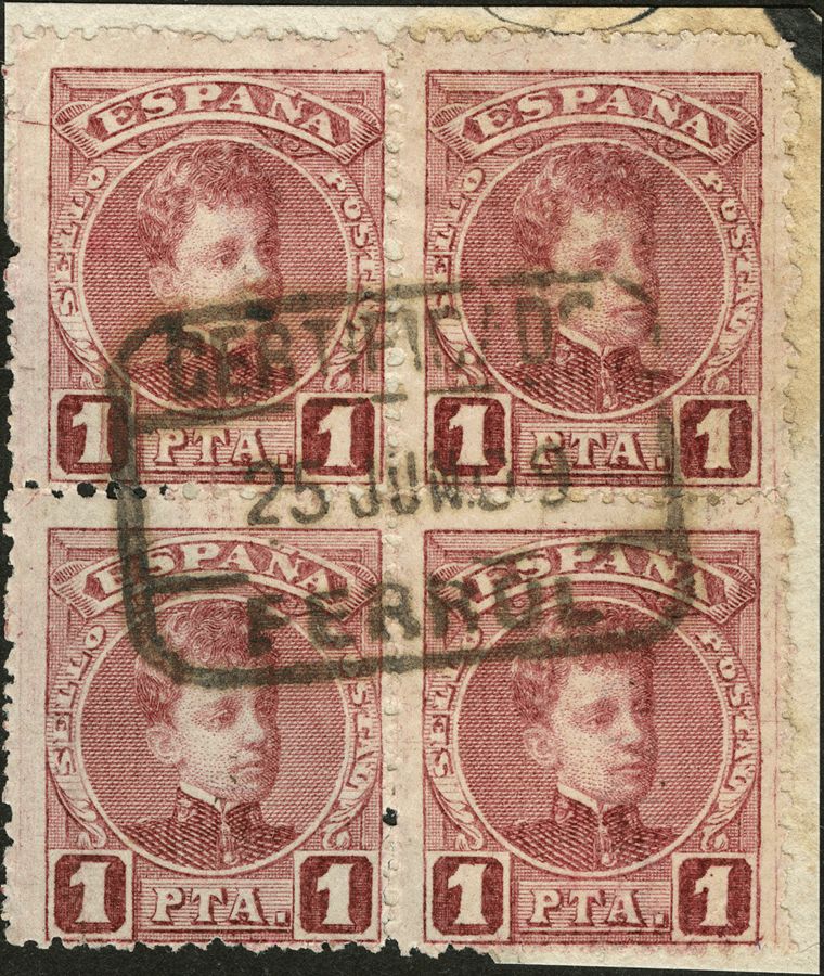 Galicia. Filatelia. CERTIFICADO / FERROL, bloque de cuatro. MAGNIFICO.