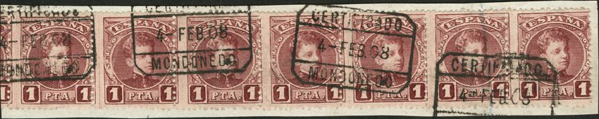 Galicia. Filatelia. CERTIFICADO / MONDOÑEDO, siete sellos. MAGNIFICOS.