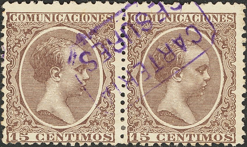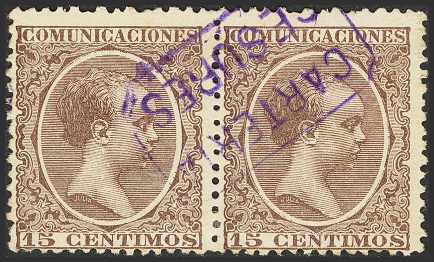 Galicia. Filatelia. CARTERIA / CESURES, en violeta, pareja. MAGNIFICA.