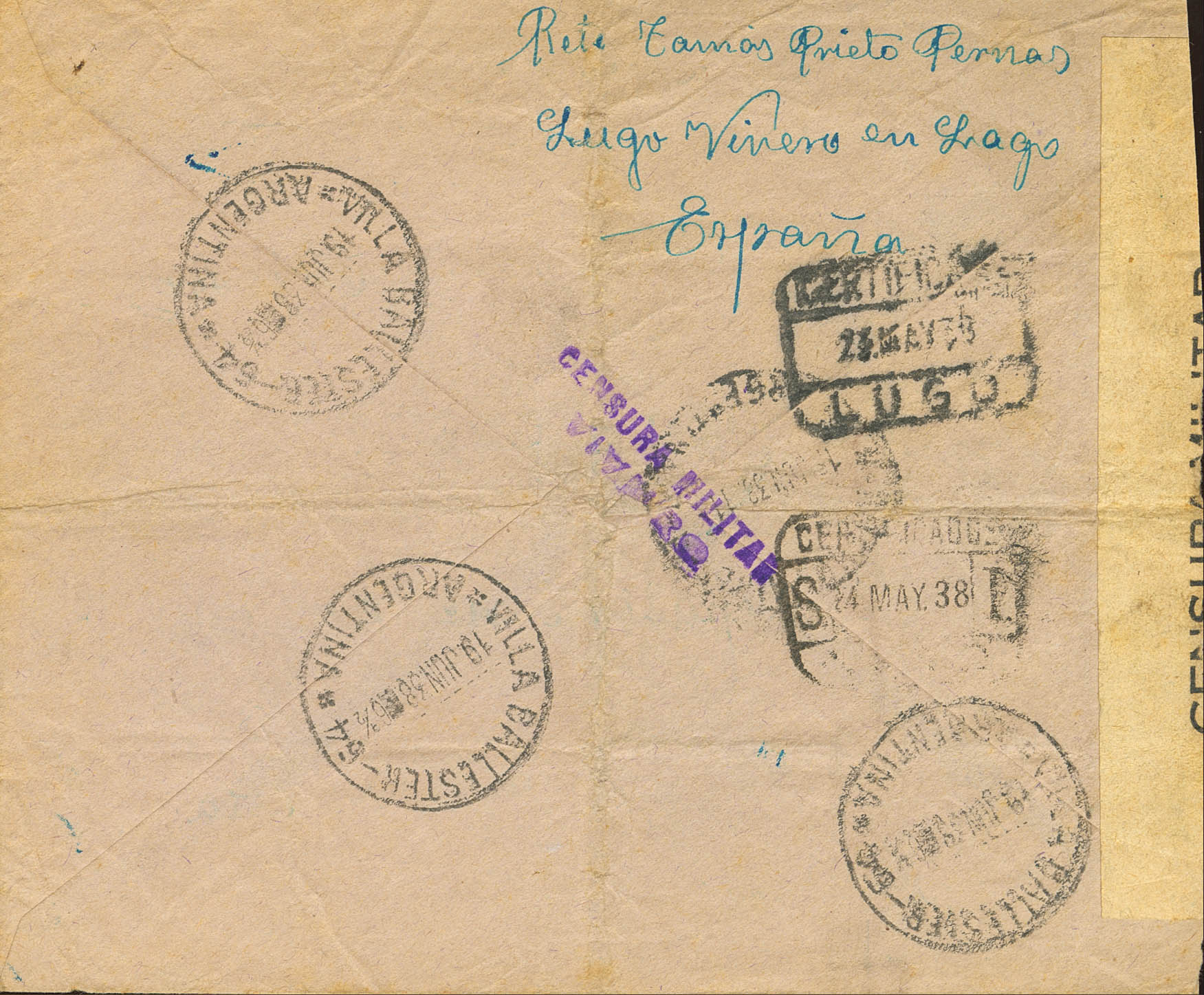 Galicia. Historia Postal. CERTIFICADO / VIVERO, al dorso llegada. MAGNIFICA.