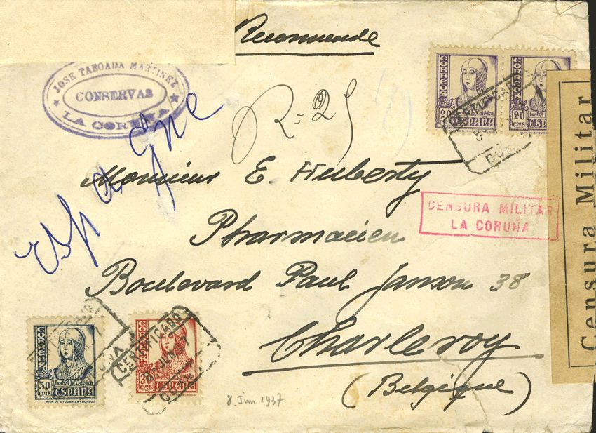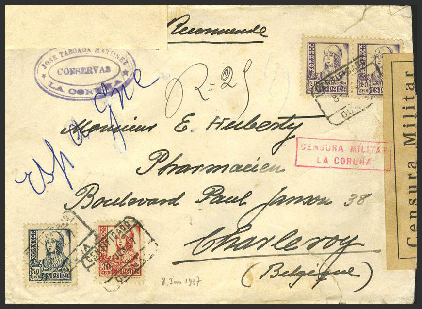 Galicia. Historia Postal. CERTIFICADO / CORUÑA. MAGNIFICA.