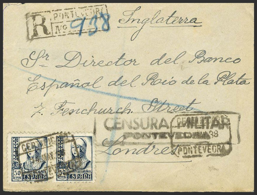 Galicia. Historia Postal. CERTIFICADO / PONTEVEDRA. MAGNIFICA.
