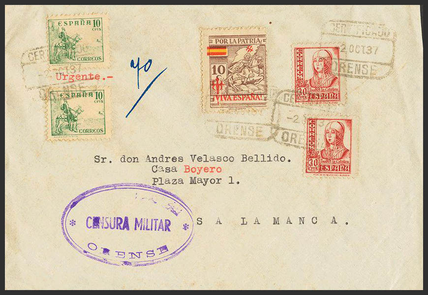 Galicia. Historia Postal. CERTIFICADO / ORENSE. MAGNIFICA.