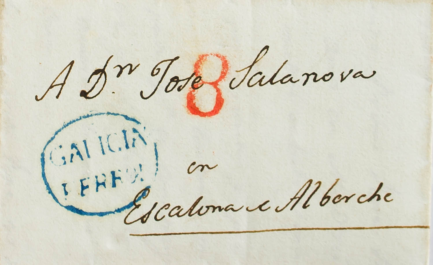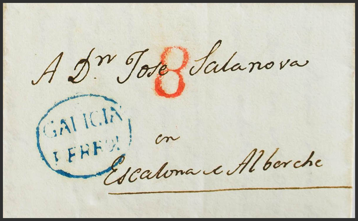 1838. EL FERROL a ESCALONA. Marca GALICIA / FERROL, en azul (P.E.11) edición 2004. MAGNIFICA.