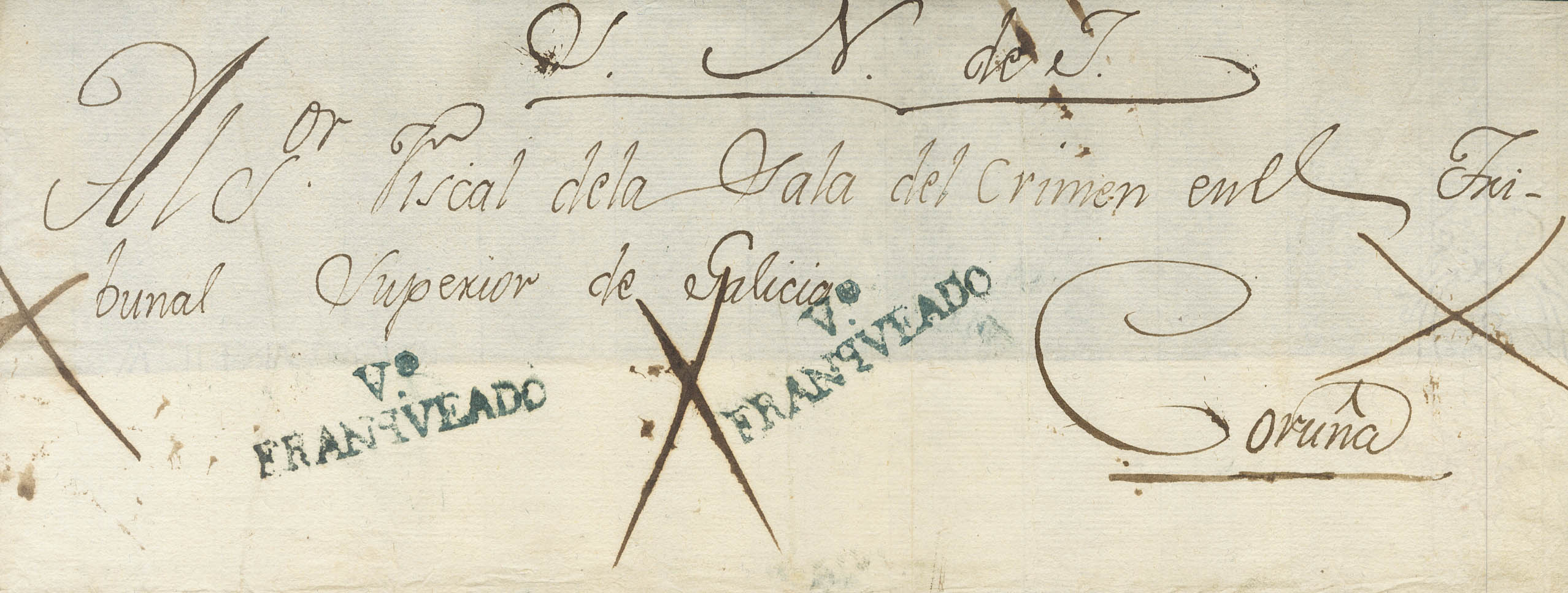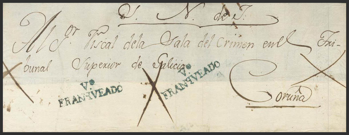 (1822ca). Frente de Plica Judicial de VIVERO a LA CORUÑA. Marca Vº / FRANQUEADO (P.E.9) edición 2004. MAGNIFICA Y RARISIMA.
