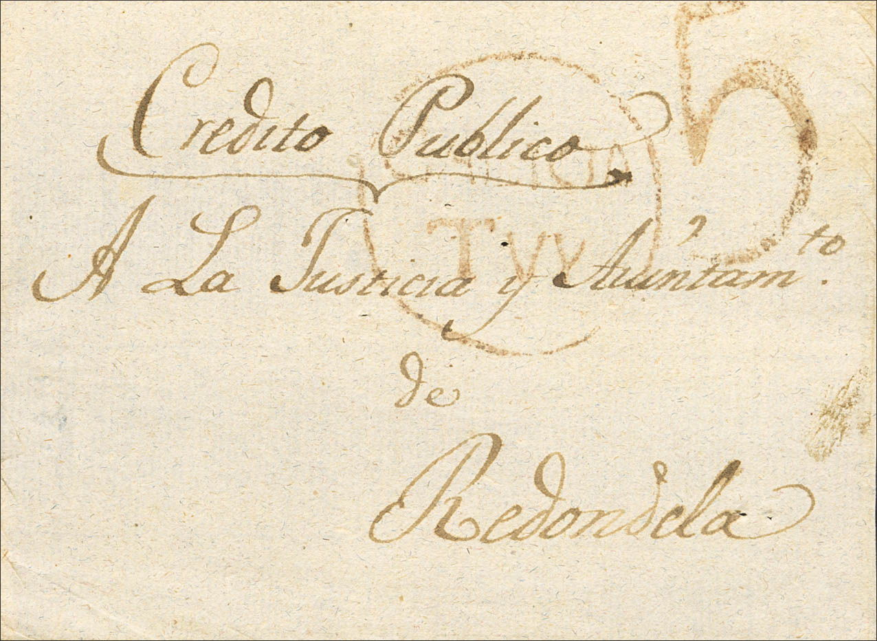 (1810ca). Frontal de TUY (PONTEVEDRA) a REDONDELA. Marca GALICIA / TUY (P.E.5) edición 2004. MAGNIFICO.