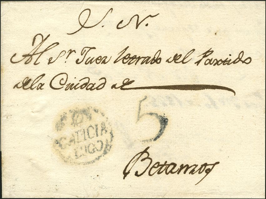 1822. LUGO a BETANZOS. Marca GALICIA / LUGO, en azul (P.E.6) edición 2004. MAGNIFICA.
