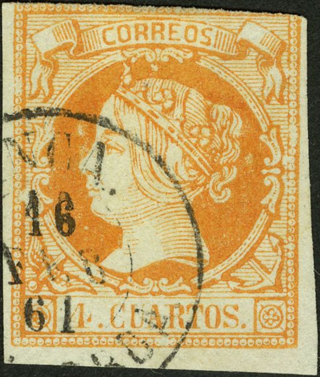 52. 1860. 4 cuartos amarillo. Matasello YNCA / MALLORCA.