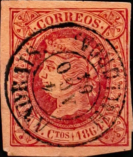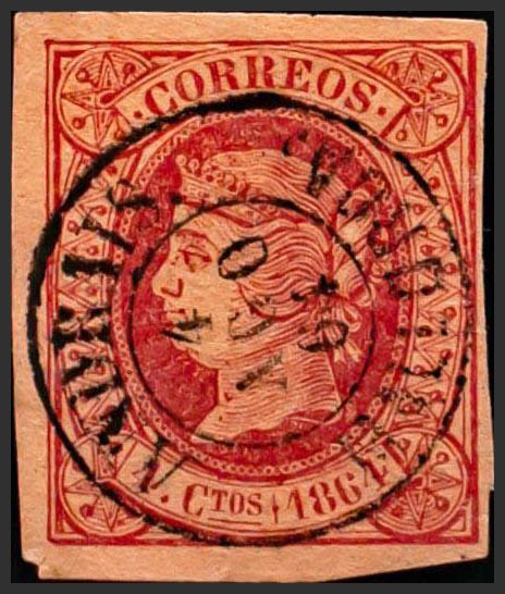 64. 1864. 4 cuartos rosa. Matasello ANDRAIS / BALEARES. MAGNIFICO Y RARO.