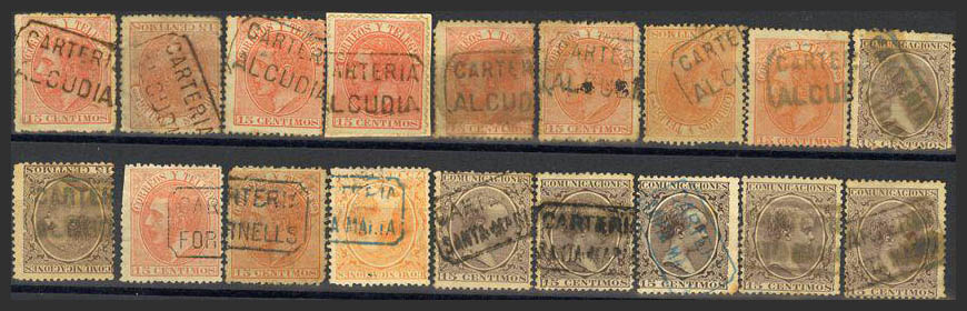 210, 219. (1900ca). Colección de carterías de la provincia de BALEARES, generalmente buenas estampaciones. IMPRESCINDIBLE EXAMINAR.